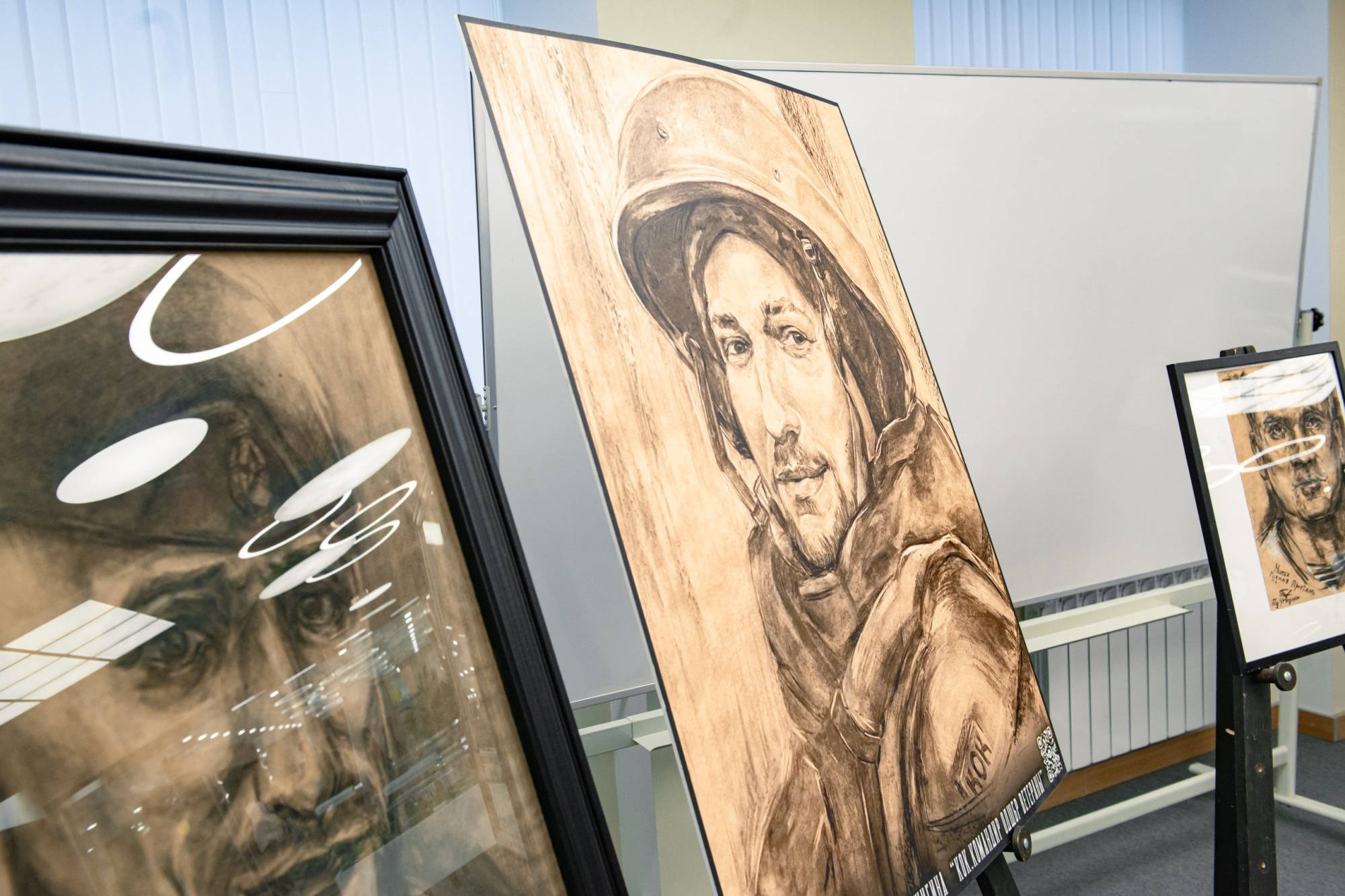 На выставке также представлены портреты участников специальной военной операции (СВО), созданные художницей Виринеей Шигиной. Автор картин рассказала студентам о значимом вкладе бойцов в защиту Отечества. Она отметила, что героев СВО важно помнить, чтить их подвиг и передавать память следующим поколениям.